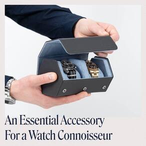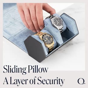 Rolos de relógio portáteis para viagens — Nossos estojos de viagem com rolo de relógio duplo têm o tamanho perfeito para facilitar o transporte. As almofadas em forma de “M” e o trilho deslizante garantem um estojo de transporte confortável e seguro para relógios.