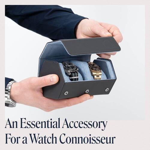 Compatível com , Patek, Cartier e outras marcas importantes — esta caixa de couro armazena dois relógios com pulsos de 6,5 pés ou mais, adequados para pulseiras e pulseiras de couro, metal, aço e borracha.
