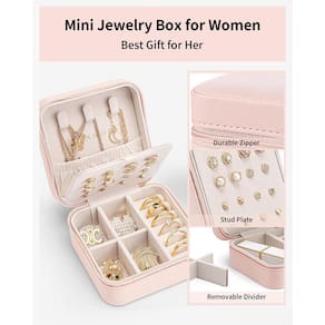 - Tamanho pequeno — 3,9* 3,9* 2 polegadas/10* 10* 5 cm. O estojo de joias de viagem é portátil e leve, fácil de transportar em suas bolsas ou bagagens
