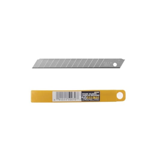 Estojo de lâminas olfa asb-10 com 10 unidades Caixa com 10 lâminas de 09mm, ideal para cortar papel, plástico, e fórmicas. De aço resistente alta durabilidade, cortes precisos com a qualidade e a segurança