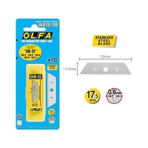 - marca: olfa - modelo: skb-2s / 10b - compatível com os modelos de estiletes: sk-12, sk-3, sk-4, sk-5, sk-9, utc-1. - contém: 10 lâminas - espessura: 0.06 - dimensões: 17,5 x 72 mm - composição: aço - cor da embalagem: amarela - são extremamentes afiadas - possui alta precisão - equipamento seguro Marca: Não Informado