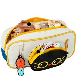 Material: tecido composto Peso: 300 g Tamanho: 220 mm* 60 mm* 100 mm O adorável design 3D para gatos Apresenta um charmoso rosto de gato preto com detalhes amarelos e decorações de chaveiro de peixe, adicionando um toque extra de fofura à sua coleção de artigos de papelaria. Armazenamento espaçoso O estojo oferece um espaço generoso com compartimentos para canetas, lápis, borrachas e outros suprimentos, ajudando você a manter tudo organizado em um só lugar. Material durável Feita com tecido composto de alta qualidade, esta bolsa para lápis é forte e durável, garantindo que seu papel de carta esteja bem protegido para uso a longo prazo. Bolsa conveniente com zíper Inclui um bolso externo conveniente com zíper para pequenos acessórios ou anotações e um compartimento principal seguro para seus itens de papelaria maiores. Versátil e prático. Perfeito para escola, escritório ou viagens, este estojo de lápis funciona como bolsa de cosméticos ou mini organizador de acessórios, ideal para crianças e adultos.