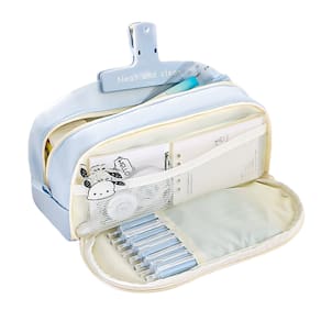 Material: Peso do tecido: 90 g Tamanho: 225 mm* 90 mm* 110 mm Grande capacidade: design espaçoso para guardar canetas, lápis, borrachas e outros itens de papelaria, perfeito para escola, escritório ou uso pessoal. Design elegante: estojo de lápis azul minimalista e estético com fecho de zíper, oferecendo uma aparência elegante e moderna para meninas e meninos. Material durável: feito de tecido de alta qualidade, garantindo durabilidade e uso duradouro para estudantes e profissionais. Portátil e prático: design leve e compacto com tamanho conveniente (225 mm x 90 mm x 110 mm), facilitando o transporte em mochilas escolares ou mochilas. Perfeito para todas as idades: ideal para estudantes do ensino fundamental, médio e universitário, bem como para quem procura um organizador de papelaria estiloso para o uso diário.