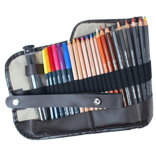 Estojo de Lápis com acabamento em couro sintético com 34 escaninhos para lápis, 01 escaninho para apontador e 01 escaninho para borracha. Lindíssima apresentação. Fácil de manusear e escolher o lápis desejado. Não acompanha os lápis da imagem. Foto Ilustrativa