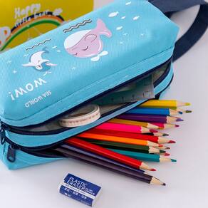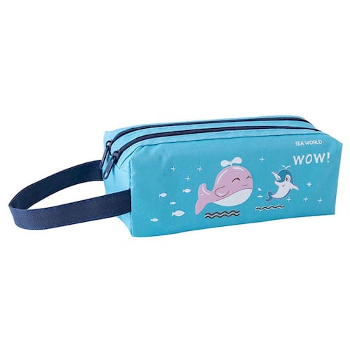 Material: tecido Oxford Peso: 50 g Tamanho: 20 cm* 7,5 cm* 7,5 cm Grande capacidade: apresenta um design espaçoso de duas camadas, perfeito para organizar canetas, lápis, borrachas e outros artigos de papelaria, tornando-o ideal para estudantes e funcionários de escritório. Design fofo de desenho animado: o estojo de lápis apresenta um design divertido e adorável de baleia com “SEA WORLD” e “WOW!” imprima, adicionando um toque divertido ao seu material escolar. Material durável: feito de tecido Oxford de alta qualidade, garantindo que o estojo seja resistente, durável e fácil de limpar. Fecho de zíper conveniente: equipado com zíperes duplos para facilitar o acesso, fornecendo armazenamento seguro para todos os seus itens essenciais de papelaria. Portátil e prático: tamanho compacto (20 cm x 7,5 cm x 7,5 cm) com uma alça de mão para facilitar o transporte, tornando-o perfeito para uso escolar, universitário ou em qualquer lugar.