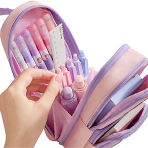 Material: tecido Oxford Peso: 150 g Tamanho: 215 mm* 90 mm* 85 mm Design de mochila adorável — apresenta um design divertido inspirado em uma mochila com emblema em forma de coroa e detalhes listrados, perfeito para estudantes do ensino fundamental e médio que adoram artigos de papelaria estilosos. Armazenamento de grande capacidade — Com dimensões de 21,5 × 9 × 8,5 cm, este estojo oferece amplo espaço para canetas, lápis, marcadores e outros materiais escolares, mantendo-os bem organizados. Tecido Oxford durável — Feita de tecido Oxford de alta qualidade, esta bolsa para canetas é resistente ao desgaste, garantindo um uso duradouro e sendo leve e fácil de transportar. Alça de suspensão prática — Inclui uma alça de suspensão conveniente, facilitando o transporte ou a suspensão em mochilas, mochilas escolares ou mesas para acesso rápido a artigos de papelaria. Perfeito para uso escolar — Ideal para estudantes, este estojo de lápis bonito e funcional é ótimo para organizar material escolar, pequenos acessórios ou maquiagem em qualquer lugar.
