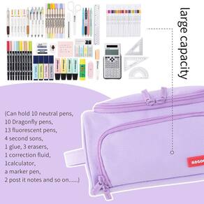 ?Grande capacidade?O compartimento principal acomoda até 80-100 canetas/lápis e pode armazenar pequenos papéis de carta nos bolsos laterais, como notas, borracha, adesivo, etc. Na ranhura da aba frontal, pode colocar algumas canetas mais curtas que são frequentemente s.