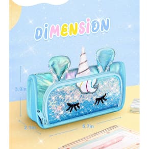 Estojo de lápis LISEVO Cute Unicorn, bolsa de lápis 3D para meninas e crianças, bolsa de lápis brilhante com lantejoulas para estudantes, porta-canetas estacionário Glitter Bling School Supplies, azul