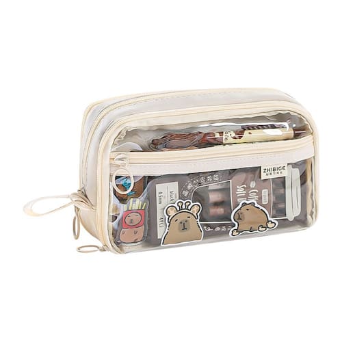 Material: Peso do tecido: 90 g Tamanho: 210 mm* 65 mm* 130 mm Design divertido de capivara: com uma linda personagem de capivara com adesivos adoráveis, este estojo de lápis dá um toque divertido ao material escolar, tornando-o perfeito para estudantes de todas as idades. Espaçosa e prática: com uma grande capacidade e vários compartimentos, esta bolsa de lápis pode armazenar facilmente canetas, lápis, borrachas e outros itens essenciais escolares, mantendo tudo organizado. Transparente e fácil de acessar: o design claro permite que você veja todos os seus itens de papelaria em um piscar de olhos, garantindo acesso rápido e fácil sempre que precisar deles. Durável e leve: feito de tecido de alta qualidade, este estojo para canetas é resistente, leve e ideal para uso diário na escola ou no escritório. Perfeito para a escola e para casa: ótimo para estudantes do ensino fundamental, médio e médio, bem como para qualquer pessoa que precise de um organizador de papelaria bonito e funcional.