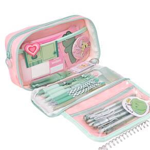 Material: Peso do tecido: 100g Tamanho: 20* 7* 11 cm Design elegante: apresenta uma combinação moderna de cores rosa e verde com um painel transparente, tornando-o funcional e moderno para estudantes e profissionais. Grande capacidade: amplo espaço de armazenamento (20711 cm) para guardar canetas, lápis, borrachas e outros materiais escolares ou de escritório, mantendo tudo bem organizado. Tecido de alta qualidade: feito com tecido leve e durável (100g), garantindo um uso duradouro sem adicionar volume extra à sua bolsa. Versátil e prático: perfeito para materiais escolares, de escritório ou de arte, este estojo multifuncional pode armazenar não apenas artigos de papelaria, mas também outros itens pequenos. Criativo e divertido: o design transparente adiciona um toque moderno, permitindo que você encontre rapidamente o que precisa, enquanto o estilo estético o destaca.