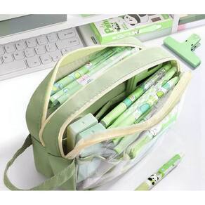 Material: tela Peso: 87 g Tamanho: 210 mm* 65 mm* 130 mm Design elegante e simples: este estojo de lápis apresenta um design limpo e minimalista em uma cor verde matcha fresca, perfeito para estudantes que buscam uma maneira eficiente de organizar seus artigos de papelaria. Grande capacidade: com vários compartimentos e amplo espaço, ele pode facilmente armazenar canetas, lápis, borrachas e outros materiais escolares, mantendo tudo limpo e organizado. Material transparente: o design claro permite fácil visibilidade de seus itens, facilitando a localização rápida do que você precisa. Tecido de lona durável: feito com lona de alta qualidade, este estojo de lápis é resistente e construído para suportar o uso diário na escola. Ideal para estudantes: perfeito para estudantes do ensino fundamental, médio e universitário, este estojo de lápis combina funcionalidade com um design elegante para uso escolar ou no escritório.
