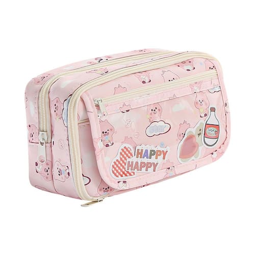 Material: Peso do tecido: 100 g Tamanho: 210 mm* 105 mm* 130 mm Design divertido e divertido: apresenta um urso adorável e estampado de adesivos “Feliz”, tornando este estojo de lápis uma adição divertida e colorida à sua coleção de papelaria. Grande capacidade: com dimensões espaçosas de 210 mm x 105 mm x 130 mm, oferece amplo armazenamento para canetas, lápis, borrachas e outros itens essenciais de papelaria. Design transparente: O painel frontal transparente permite que você visualize e acesse facilmente seus itens, mantendo tudo organizado e ao alcance. Durável e leve: feito de tecido de alta qualidade (100 g), este estojo de lápis é leve e durável, perfeito para o uso diário na escola ou no escritório. Versátil e prático: adequado para estudantes do ensino fundamental e médio, bem como para estudantes universitários e profissionais, este estojo de lápis é funcional e elegante para uso diário.
