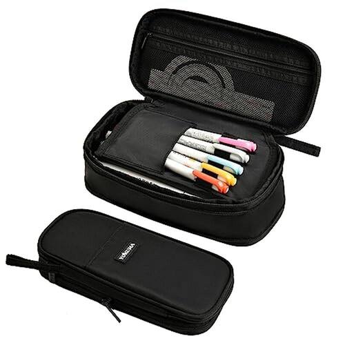 Estojo de lápis YOKUMA, bolsa de lápis para meninos, caixa de canetas de grande capacidade, material escolar universitário de estética para estudantes, adolescentes e adultos, preppy, preto