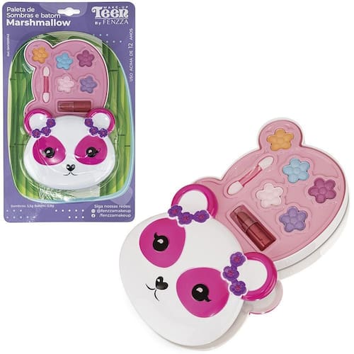 Estojo de maquiagem com sombra + batom e pincel teen marshmallow panda 12x11cm