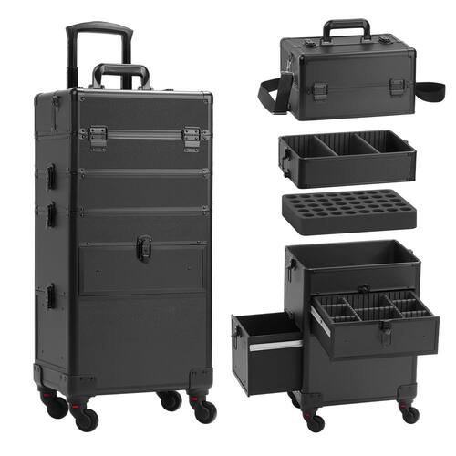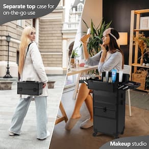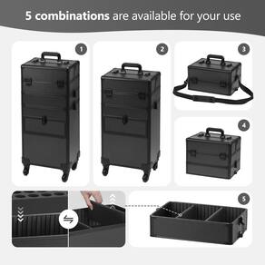 - ?Estojo de viagem versátil 5 em 1 para maquiagem:?Esta mala de maquiagem é um verdadeiro camaleão, oferecendo a você a flexibilidade para personalizá-la de acordo com suas necessidades exatas. Com 4 compartimentos destacáveis, você pode facilmente criar a configuração perfeita. Use o compartimento superior como uma caixa de maquiagem portátil e remova os compartimentos médio e inferior conforme necessário.