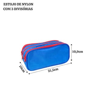 É um item prático e funcional para organizar materiais escolares. O nylon, conhecido por sua durabilidade e resistência à água, torna o estojo leve e fácil de transportar, além de resistente ao uso diário. As três divisórias internas permitem separar lápis, canetas, borrachas e outros itens pequenos, facilitando o acesso e a organização dos materiais. As divisórias são fechadas por zíperes, garantindo que o conteúdo do estojo fique seguro e protegido de possíveis quedas ou vazamentos. Com um design compacto e funcional, este estojo é ideal para ser levado em mochilas ou bolsas, oferecendo espaço suficiente para os itens essenciais, sem ocupar muito volume.É um acessório prático que atende tanto ao gosto estético quanto às necessidades de organização de estudantes de todas as idades.