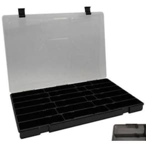 Estojo De Pesca Porta Iscas Anzol Chumbada 22 Div Regulavel Estojo Rochel 22 divisões removíveis e reguláveis. O estojo Rochel pesca é perfeito para iscas artificiais, anzóis, chumbadas entre outros. É um estojo de alta qualidade e sofisticação feito com plástico de alta resistência conta com paredes mais grossas, um compartimento interno grande, fechado e bem isolado pelas suas travas de fechamento resultando em uma armazenagem mais segura de iscas mais delicadas. Características: Fabricante: Rochel Pesca Modelo: Estojo Box 23 Preto Divisões: 22 Material: Polipropileno Possui divisórias removíveis Possui divisões ajustáveis Fechamento: Travas de segurança Dimensões A x L x C : 2,5 cm x 22,0 cm x 36,0 cm. Peso: 450gr