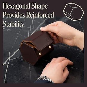 O design hexadecimal mantém os relógios seguros — os porta-relógios individuais da Hexagon oferecem estabilidade superior, mantendo seus relógios no lugar certo. A tampa desdobrável fica plana para que você possa trocar os relógios com segurança sem danos