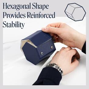 O design hexadecimal mantém os relógios seguros — os porta-relógios individuais da Hexagon oferecem estabilidade superior, mantendo seus relógios no lugar certo. A tampa desdobrável fica plana para que você possa trocar os relógios com segurança sem danos