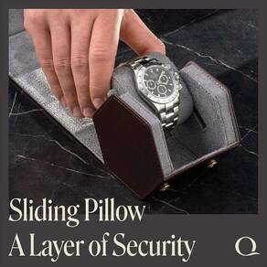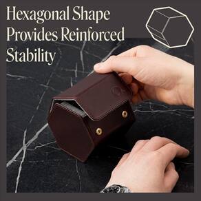 O design hexadecimal mantém os relógios seguros — os porta-relógios individuais da Hexagon oferecem estabilidade superior, mantendo seus relógios no lugar certo. A tampa desdobrável fica plana para que você possa trocar os relógios com segurança sem danos