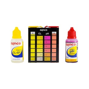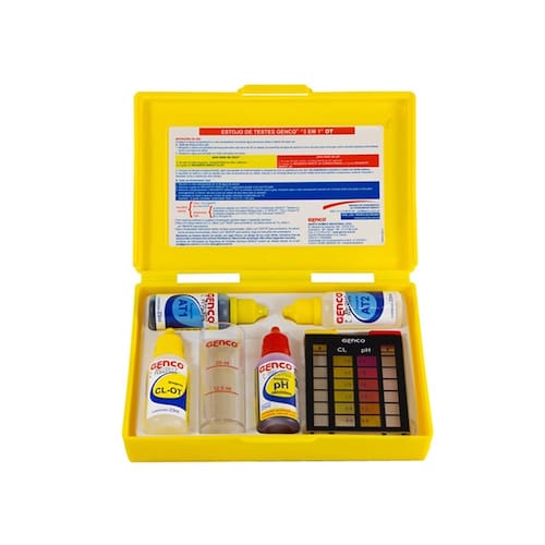 Estojo de Testes GENCO® "3 em 1" - OT mede cloro livre, pH e alcalinidade total da água da piscina de maneira rápida e simples.