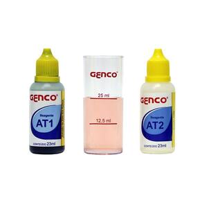 Para teste do cloro livre e pH:1) Enxágue a célula comparadora na própria água da piscina antes e depois de cada uso.2) Mergulhe a célula de boca para baixo até cerca de 30 cm abaixo da superfície e vire-a de boca para cima para colher amostra daquela profundidade dentro dos tubos da célula.3) Despreze a água que exceder os níveis marcados nos tubos.4) No tubo do lado direito, correspondente ao pH,adicione 4 gotas do REAGENTE GENCO® pH.5) No tubo do lado esquerdo, correspondente ao cloro, adicione 4 gotas do REAGENTE GENCO® CL-OT.6) Coloque as tampas, agite para igualar as cores formadas e compare-as com os padrões ao seu lado.Para teste da alcalinidade total:1) Enxágue a célula comparadora e o tubo transparente na própria água da piscina antes e depois de cada uso.2) Recolha no tubo transparente 25 ml de água da piscina.3) Adicione 3 gotas do REAGENTE GENCO® AT1 e agite para igualar a cor azul formada.4) Adicione cuidadosamente o REAGENTE GENCO® AT2 na amostra, contando gota a gota, enquanto agita o tubo transparente (sempre em círculos) entre uma gota e outra para homogeneizar a mistura, até que a sua cor passe de azul para rosa ou amarelo.5) O resultado do teste é igual ao número de gotas utilizadas multiplicado por 10.Exemplo: 12 gotas utilizadas: Alcalinidade Total = 12 x 10 = 120 ppmSó utilize reagentes durante seu prazo de validade.Faixa ideal:· pH entre 7,4 e 7,6.· Cloro livre entre 2 e 4 ppm*.Para piscinas tratadas com GENCLOR® Cloro Estabilizado GENCO® Tabletes ou Granulado ou GENCO® L.E. Cloro Granulado Múltipla Ação “3 em 1”, a faixa ideal da alcalinidade total é entre 100 e 120 ppm.·Para piscinas tratadas com POOL-TRAT® Cloro Granulado GENCO®, a faixa ideal da alcalinidade total é entre 80 e 100 ppm.* Em piscinas públicas ou sujeitas à fiscalização sanitária seguir a legislação aplicável.