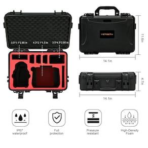 ?Serviço de qualidade?O que você recebe: 1 capa rígida YETEETH Mini 4 Pro. Nossa garantia de 12 meses sem preocupações/reembolso e atendimento ao cliente amigável - ?Design personalizado? Capa rígida YETEETH projetada especificamente para DJI Mini 4 Pro/Mini 3 Pro/Mini 3 Fly More Combo compatível com controle RC 2/RC e outros acessórios. - ?Grande capacidade? - ?Seguro e resistente?Capa Mini 4 Pro feita de material PP confiável, o revestimento externo pode sobrecarregar o impacto de 2,268 kg (quase o peso de um carro). Tiras de borracha de vedação são usadas ao redor das juntas na caixa para garantir o nível de impermeabilidade IP67 da capa Mini 4 Pro. Esta capa garante proteção total ao seu drone Mini 4 Pro e acessórios. - ?Design portátil?Peso: 1,1 kg, Dimensões externas: 35,56 x 26,4 x 11,4 cm. Ótima capa de viagem para DJI Mini 4 Pro. Uma alça antiderrapante e alça de pescoço ajudam você a levá-la para qualquer lugar! - ?Serviço de qualidade?O que você recebe: 1 capa rígida YETEETH Mini 4 Pro/Mini 3 Pro/Mini 3. Nossa garantia/reembolso de 12 meses sem preocupações e atendimento ao cliente amigável [drone DJI Mini 4 não incluído e acessórios].