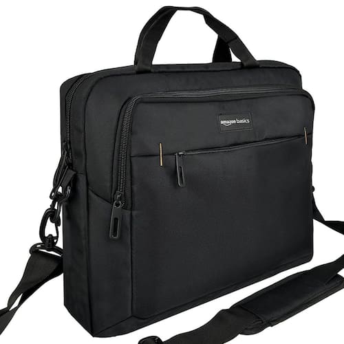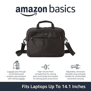 Amazon Basics Bolsa de transporte para laptop, alça de ombro, 14 polegadas, preta - Amplo armazenamento: o compartimento frontal de alto volume nesta bolsa para laptop oferece espaço para cabos de alimentação, cartões de visita, dispositivos USB e outros itens essenciais, enquanto o prático bolso frontal oferece acesso rápido a itens menores - Opções de transporte versáteis: esta bolsa de trabalho possui uma alça de ombro ajustável e removível e alças para transporte conveniente - AMIGÁVEL PARA VIAGEM: Esta bolsa de computador tem uma passagem de bagagem no painel traseiro que permite fácil fixação à bagagem com rodinhas - Compatibilidade compacta: projetada para caber em laptops e tablets de vários tamanhos, esta bolsa carteiro para laptop pode ser usada para proteger uma variedade de dispositivos