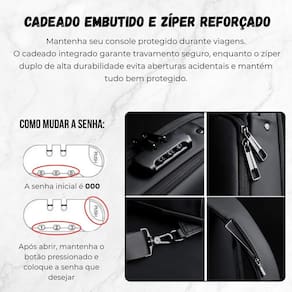 Estojo de transporte para nintendo switch oled - acessórios Cor: cinza Proteção, praticidade e estilo em um único produto. A case bag universal foi desenvolvida para transportar seus dispositivos com total segurança, combinando design moderno, estrutura rígida e acabamento premium. Compatível com nintendo switch, switch oled, switch 2 v2 , além de celulares e acessórios. Ideal para viagens, deslocamentos e o dia a dia - mantendo tudo protegido e sempre à mão. Conta com porta usb lateral, permitindo carregar seus dispositivos através de power bank não incluso , e cadeado embutido com senha, oferecendo mais segurança contra acessos indesejados. Com alça ajustável e ergonômica, pode ser Utilizado no ombro ou transversalmente, seu interior espaçoso e acolchoado possui divisórias inteligentes para acomodar console, tablet, cabos e acessórios. Design versátil, resistente à água e ideal para quem busca praticidade sem abrir mão da proteção. ------------------ ------------------ Essa bolsa é compatível com o nintendo switch R: sim compatível com todas as versões do nintendo switch v1, v2 e oled . Possui entrada usb funcional R: sim, conta com porta usb lateral externa para uso com power bank não inclusa . A bolsa é à prova dágua R: ela é resistente à água e respingos, ideal para uso urbano e viagens curtas. O cadeado vem incluso R: sim, a bolsa possui cadeado de combinação embutido para maior segurança. Posso alterar a senha do cadeado Basta segurar o botão lateral e soltar apenas quando colocar a nova senha. ------------------ Especificações ------------------ Modelo: case bag universal com cadeado e porta usb Material: material sintético premium + estrutura rígida eva Dimensões: 21 34 12 cm Recursos adicionais: porta usb lateral, cadeado embutido, alça ajustável Compatibilidade: nintendo switch 2 / nintendo switch oled / nintendo switch v2. ------------------ Conteúdo ------------------ 1x case bag universal com cadeado e porta usb Anúncio referente a case bag Acessórios que ambientam as fotos não inclusos. ------------------ Apresentação: ------------------ - qualidade garantida. - atendimento qualificado. - enviamos para todo o brasil. - compra garantida. - despachamos em até 1 dia útil após confirmação do pagamento Garantimos a devolução por arrependimento em até 7 dias, após o recebimento e de 15 dias contra defeitos de fabricação. Marca: Não Informado