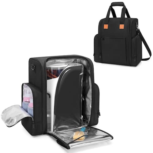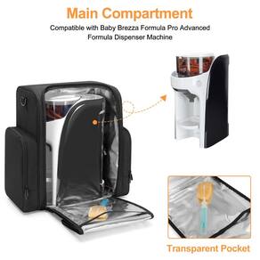 Bolsa de transporte compatível com a máquina dispensadora Baby Brezza Formula Pro Advanced (wifi) - Trabalho premium – Feito de tecido de nylon 600D forrado com enchimento de espuma PE, a bolsa protege o misturador de fórmula contra choques, quedas e arranhões. O forro isolado de alumínio não apenas é fácil de limpar líquidos ou poeira, mas também mantém a água ou o leite quentes ou frios. (BAG apenas, patenteado) - Vários bolsos: bolso isolado à esquerda especialmente para mamadeiras para manter o leite aquecido. Bolso direito projetado para acessórios de bebê, como recipiente de leite em pó, chupeta de bebê. A parte frontal pode guardar brinquedos de bebê ou outros itens essenciais para bebês. A parte traseira é boa para fraldas de bebê. - Abertura de 180° – Abra os zíperes de duas direções, coloque ou retire a máquina de fórmula convenientemente devido ao design totalmente aberto. Você pode obter o status atual do dispensador de fórmula à primeira vista. O bolso interno grande visível cabe bem em lenços e panos para facilitar a limpeza. - Fácil de viajar: as alças envolventes ajudam você a carregar o aquecedor de mamadeira facilmente. A alça de ombro acolchoada e a bolsa traseira para bagagem liberam suas mãos para levá-la em movimento. - Tamanho – Bolsa inteira: 40 cm C x 19 cm L x 40 cm A. Para armazenamento na máquina: 29 cm C x 19 cm L x 40 cm A. Compatível com Baby Brezza* Formula Pro Advanced (WiFi), compatível com Comfyer*, compatível com BabyExo*, compatível com Mercalon* Formula Dispenser. Verifique o tamanho antes de comprar. *NOTA: a bolsa de armazenamento Yarwo não está relacionada à marca indicada.