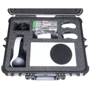 Capa Case Club para caber no Xbox Series X ou S com fone de ouvido. A capa de viagem rígida protegerá seu console e acessórios muito melhor do que qualquer capa macia, resistindo a incríveis abusos em ambientes extremamente hostis. Esta capa é moldada em polipropileno resistente e é resistente, leve, impermeável, hermética e econômica. Um anel de vedação perimetral veda os elementos, protegendo o conteúdo da água, poeira e outros contaminantes. A capa não lascará, amassará, perderá o acabamento e protegerá seu sistema por muitos anos! - [A capa serve] A maleta de transporte portátil do Case Club serve para o console Xbox Series X ou S, 2 controladores, 10 a 16 jogos, fones de ouvido, cabos e acessórios em uma capa de plástico rígido resistente moldada por injeção - [Interior de espuma personalizado] A espuma absorvente de choque é um polietileno de célula fechada de nível militar que durará toda a vida e é pré-cortada para caber perfeitamente no Xbox Series X ou S junto com os acessórios. Proteja seu console e acessórios enquanto mantém tudo bem organizado para armazenamento, viagem e envio. A espuma personalizada pré-cortada se encaixa na sua Série S ou X e nos acessórios prontos para uso! Não é necessário arrancar bagunça, irreversível e demorada! - [Características da capa] A capa de viagem e armazenamento robusta para Xbox Series X/Series S da Case Club é à prova d'água (ip67), à prova de esmagamento, à prova de poeira, compacta, hermética, pode ser enviada e é aprovada pela TSA para bagagem despachada. As dimensões externas da caixa são 22,00 “l x 17,50" l x 8,50" h. - [Hardware da caixa] A capa é feita de plástico de polipropileno de copolímero de alta resistência moldado por injeção com nervuras para reforço estrutural adicional. 4 travas fortes mantêm a caixa bem fechada; 2 orifícios de cadeado reforçados com metal mantêm seu conteúdo protegido; pinos de dobradiça de aço inoxidável para maior resistência; válvula de alívio de pressão para mudanças de altitude; 2 orifícios de cadeado reforçados com metal mantêm seu conteúdo protegido; pinos de dobradiça de aço inoxidável para maior resistência; válvula de alívio de pressão para mudanças de altitude; borracha sobre o molde alça embutida para maior conforto; e uma vedação de vedação impede a entrada de água, poeira, sujeira e outros detritos estranhos. - [O presente perfeito] Ótima ideia de presente para jogadores, amigos, familiares, viajantes e, o mais importante, para você mesmo! - [A competição] Não caia em estojos falsos de “casca dura”! a concorrência chamará seus produtos de “duros” ou “duráveis” quando, na verdade, seus produtos são apenas bolsas moldadas de tecido macio com zíper. Lembre-se de que, se tiver um zíper, não é à prova d'água ou resistente! - [Isenção de responsabilidade] O console Xbox Series X ou S e os acessórios não estão incluídos. Este produto é o estojo de transporte apenas com espuma personalizada. - [Garantia vitalícia] A maleta de transporte Xbox Series X da Case Club vem com garantia vitalícia. Seu console, controladores, fones de ouvido, jogos e acessórios da Série X estarão protegidos por gerações futuras!