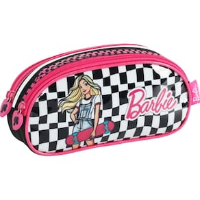 Estojo Duplo Escolar Infantil Barbie Estampa Fashion Cor: Preto Leve organização e estilo para a rotina escolar com o Estojo Duplo Infantil Barbie Estampa Fashion Com design inspirado no universo glamouroso da Barbie, ele oferece dois compartimentos espaçosos, ideais para acomodar lápis, canetas e acessórios. Fabricado com materiais de alta qualidade, une funcionalidade e sofisticação para encantar e facilitar o dia a dia das pequenas.