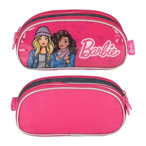 Estojo Duplo Escolar Infantil Barbie Estampa Fashion Cor: Azul Leve organização e estilo para a rotina escolar com o Estojo Duplo Infantil Barbie Estampa Fashion Com design inspirado no universo glamouroso da Barbie, ele oferece dois compartimentos espaçosos, ideais para acomodar lápis, canetas e acessórios. Fabricado com materiais de alta qualidade, une funcionalidade e sofisticação para encantar e facilitar o dia a dia das pequenas.