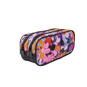 Estojo Duplo Minnie T01 11321 Xeryus: - Produzido em poliéster resistente e lavável; - Painel frontal em PVC cristal; - Compartimentos espaçosos, perfeitos para ajudar na organização dos objetos; - Zíperes com puxadores personalizados.