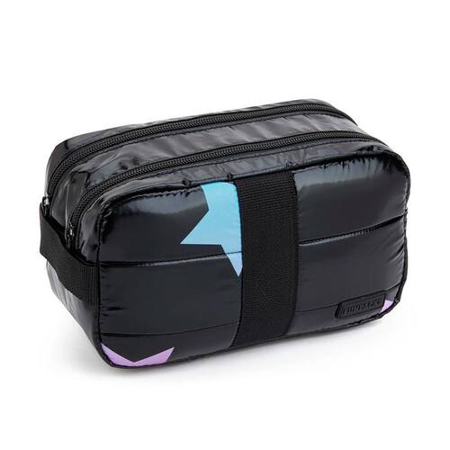 Contém: 01 un - estojo duplo necesserie preto com estrelas - seanite.