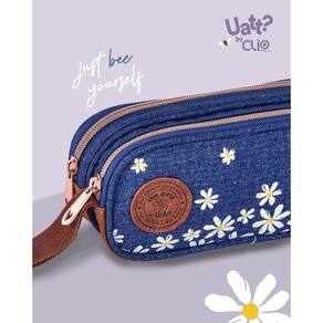 Estojo confeccionado em poliéster com estampa de jeans com detalhe de PVC, silk de florzinhas, zíper rose gold e etiqueta de PVC prensada. Espaçoso, contém dois compartimentos para organizar os seus materiais como desejar, além de ter um design encantador, combinando cores e elementos que vão lhe acompanhar no seu dia a dia de estudos e organização. Dimensões: 21cm comprimento x 6cm largura x 9cm altura Marca: Não Informado