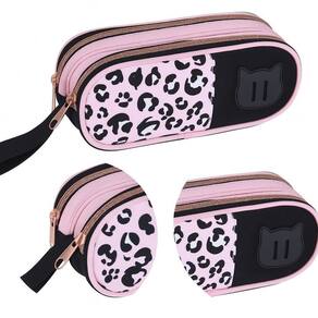 Estojo confeccionado em poliéster com estojo rosa oncinha. Espaçoso, contém dois compartimentos para organizar os seus materiais como desejar, além de ter um design encantador, combinando cores e elementos que vão lhe acompanhar no seu dia a dia de estudos e organização.