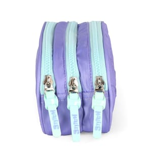 O modelo possui três compartimentos tornando-o ideal para estudantes que precisam carregar uma grande quantidade de material. Além disso, os puxadores personalizados adicionam um toque de charme e personalidade ao estojo.