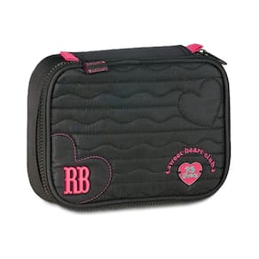 Estilo que bate mais forte: o design é o grande destaque com um acabamento em matelassê em formato de ondas imitando batidas do coração e um patch exclusivo sweet heart club bordado, este estojo mostra sua personalidade e atitude. Os puxadores de zíper coloridos dão o toque final de charme.