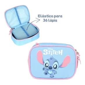 Características Estojo: - Puxadores Personalizados Emborrachados - Elasticos para 36 lápis - Stitch sublimado - Capacidade para 100 lápis/canetas