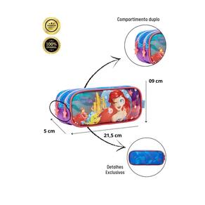 Estojo Ariel Duplo Mergulhe no mundo mágico da Ariel com esse estojo encantador O estojo duplo da Ariel é perfeito para as pequenas sereias que amam a Pequena Sereia. Com design exclusivo e prático, ele é ideal para organizar todos os materiais escolares e deixar a rotina mais divertida. Principais características: Design exclusivo: Estampa da Ariel com detalhes encantadores. Dois compartimentos: Ideal para separar lápis, canetas e outros materiais. Fechamento por zíper: Garante que nada se perca durante o transporte. Cursor personalizado: Um toque especial que as meninas vão adorar. Material resistente: Durabilidade para acompanhar o dia a dia escolar. Por que escolher esse estojo Estilo e funcionalidade: Combina o design encantador da Ariel com a praticidade de um estojo duplo. Organização: Os dois compartimentos facilitam a organização dos materiais. Durabilidade: Confeccionado com materiais de alta qualidade para durar por muito tempo. Perfeito para presente: Ideal para presentear as pequenas fãs da Ariel em qualquer ocasião. Ideal para: Meninas fãs da Ariel: Um presente perfeito para encantar as pequenas sereias. Dia a dia escolar: Organiza os materiais escolares com estilo e praticidade. Viagens e passeios: Ideal para transportar lápis, canetas e outros pequenos objetos. Medidas: