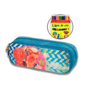 01 estojo estojo escolar duplo beauties retro coca cola jeans. Acompanha um super conjunto de 12 lápis de cor variados de brinnnddd