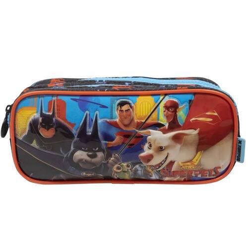 Estojo Duplo DC Super Pets R , produzido em poliéster resistente e estampado. Painel frontal PVC Cristal com 3D - Compartimento duplo para ajudar na organização dos objetos. Zíper com puxadores personalizados. Produto certificado.