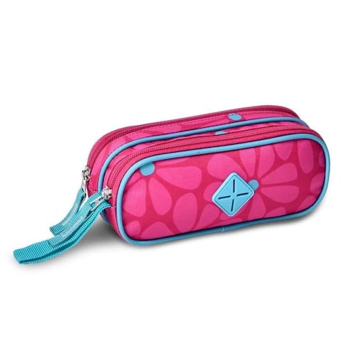 Estojo Escolar Duplo Floral Flores Lápis Clio - Rosa