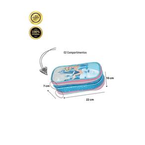 Confeccionado em Poliéster Fechamento em zíper 2 compartimentos espaçosos Design exclusivo Medidas aproximadas: Altura: 10 cm Largura: 7 cm Comprimento: 22 cm CUIDADOS: - Guarde em um local seco e arejado evitando locais úmidos. - Evite colocar excesso de peso no produto para não forçar os zíperes e costuras. - Proteja os objetos cortantes e/ou pontiagudos evitando o contato direto com o produto. - Evitar altas temperaturas. - Cores claras poderão manchar quando em contato com outros objetos ou roupas de cores pigmentadas.