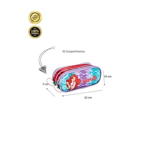 Estojo sereia Fundo do Mar 02 compartimentos Dimensões: 15 x 21 x6 cm CUIDADOS: - Guarde em um local seco e arejado evitando locais úmidos. - Evite colocar excesso de peso no produto para não forçar os zíperes e costuras. - Proteja os objetos cortantes e/ou pontiagudos evitando o contato direto com o produto. - Evitar altas temperaturas. - Cores claras poderão manchar quando em contato com outros objetos ou roupas de cores pigmentadas.