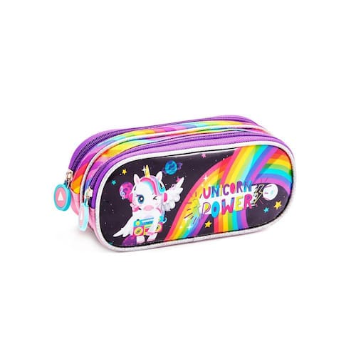 Estojo Escolar Duplo Unicórnio Arco Íris Menina