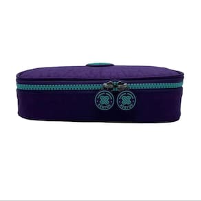 O estojo possui material resistente, amplo espaço interno, uma divisória central com elásticos que auxiliam na organização fechamento em zíper com puxadores emborrachados. Assim será possível carregar lápis de cor, caneta, canetinha e seus acessórios com segurança, conforto e estilo