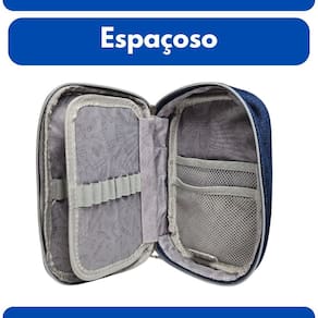 Com um design moderno e autêntico, este estojo possui estampa vibrante "Dream Big" em um fundo azul que remete ao jeans, conferindo um toque descolado e resistente. O charme extra fica por conta do adorável chaveiro de pompom azul, que adiciona um toque divertido e único ao seu material escolar.