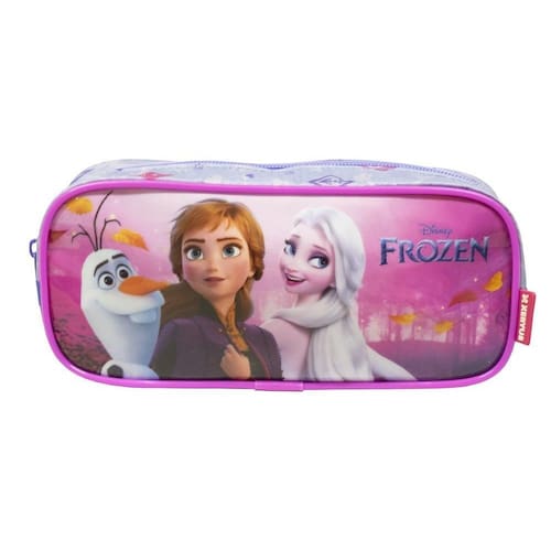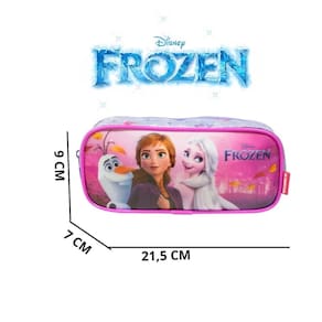 COR: Lilas Tamanho: único Genero: unissex Estojo escolar infantil Frozen Journey - Estojo , produzido em cetim estampado e vivos metalizados . Painel frontal em pvc cristal , compartimento duplo para melhor organização dos objetos e fechamento em zíper com puxadores personalizados.